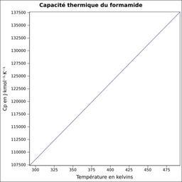 | Keywords: Capacité thermique formamide.svg fr Capacité thermique liquide calculée d'après <br/> Robert H Perry et Donald W Green Perry's Chemical Engineers' Handbook McGraw-Hill USA 1997 7e éd 2400 p ISBN 0-07-049841-5 p 2-170 own Epop 2010-06-28 Created with Gnumeric Heat capacity |