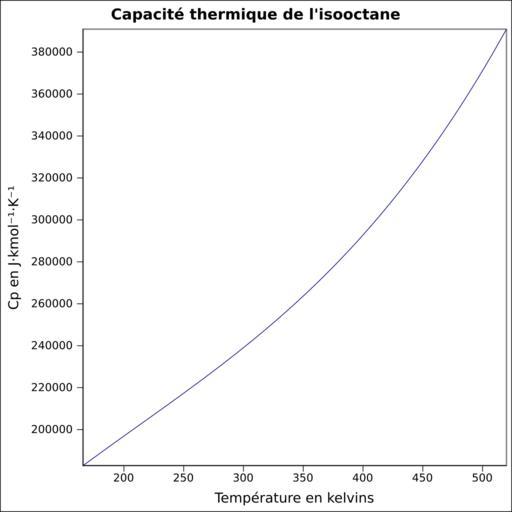 | Keywords: Capacité thermique isooctane.svg  fr Capacité thermique liquide calculée d'après <br/> Robert H Perry et Donald W Green Perry's Chemical Engineers' Handbook McGraw-Hill USA 1997 7e éd 2400 p ISBN 0-07-049841-5 p 2-170 own Epop 2010-06-28 Created with Gnumeric Heat capacity |