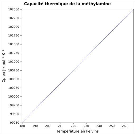 | Keywords: Capacité thermique méthylamine.svg  fr Capacité thermique liquide calculée d'après <br/> Robert H Perry et Donald W Green Perry's Chemical Engineers' Handbook McGraw-Hill USA 1997 7e éd 2400 p ISBN 0-07-049841-5 p 2-170 own Epop 2010-06-28 Created with Gnumeric Heat capacity |