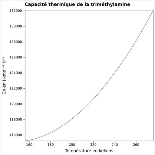 | Keywords: Capacité thermique triméthylamine.svg  fr Capacité thermique liquide calculée d'après <br/> Robert H Perry et Donald W Green Perry's Chemical Engineers' Handbook McGraw-Hill USA 1997 7e éd 2400 p ISBN 0-07-049841-5 p 2-170 own Epop 2010-06-28 Created with Gnumeric Heat capacity |