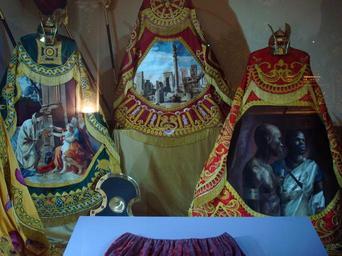 Keywords: Capas Paso Blanco.JPG Mantos bordados del Paso Blanco representando pasajes del Antiguo Testamento Semana Santa Lorca Own 2008-03-20 Awuachumele Holy Week in Lorca