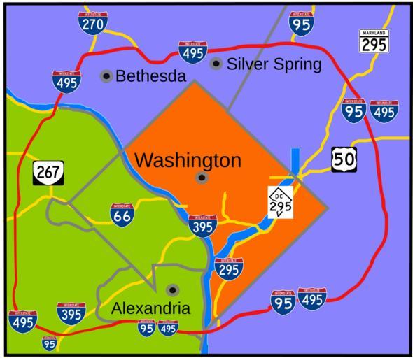 | Keywords: Capital Beltway Map Color.svg Interstate 495 in the state of Maryland and Commonwealth of Virgina in red surrounds the District of Columbia like a belt hence the name Own 2007-04-26 based on Image Capital Beltway Map Color png by Squiggygfm Made with Inkscape SVG maps of Washington D C Road maps of Virginia Road maps of Maryland SVG maps of the United States Road maps of Washington D C Interstate 495 Capital Beltway | ||||