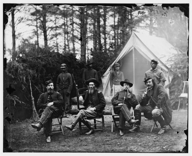 | Keywords: Capt James M Robertson 1st Brigade Horse Artillery.jpg en View of Capt James M Robertson 1st Brigade Horse Artillery February 1864 Photograph is from the main eastern theater of the Civil War winter quarters at Brandy Station Virginia The print shows uniformed African-American in back of white officers Glass wet collodion negative http //memory loc gov/service/pnp/cwpb/04000/04044v jpg Author 1864-02 PD-old Culpeper County Virginia 1864 in Virginia James Madison Robertson | ||||