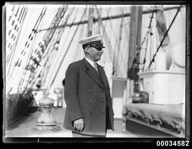 | Keywords: hood collection hoodcollection samuel j hood collection samueljhoodcollection merchant vessel merchantvessel foreign vessel foreignvessel maritime activity maritimeactivity barque ship's crew shipscrew sailor sailors sydney harbour sydneyharbour harbour scenes harbourscenes magdalene vinnen magdalenevinnen captain lorenz peters captainlorenzpeters captain woolloomooloo monochrome blackandwhite photo border black and white The four-masted steel barque, MAGDALENE VINNEN, was built in 1921 in Kiel, Germany for F A Vinnen and Company in Bremen. On 27 February 1933, under the command of Captain Lorenz Peters, MAGDALENE VINNEN sailed into Sydney Harbour. The masts were too tall to allow the vessel to pass under the Harbour Bridge to be berthed in Pyrmont, so it was moved to Number 2 wharf in Woolloomooloo. The barque was loaded with almost 16,000 bales of wool, the fourth largest shipment to have left Sydney, before it sailed the record-breaking 82-day voyage for Falmouth, England. The barque visited Australia again in 1935, with its cargo being wheat, lifted from Port Broughton in South Australia. The following year, the vessel was sold to Norddeutscher Lloyd, Bremen, renamed KOMMODORE JOHNSEN and used as a cargo carrier and sail-training ship. In 1945, the ship was awarded to the Soviet Union as war compensation and renamed SEDOV. When it was first built, it was the largest auxiliary barque in the world. To this day, it is still in operation and in 2011, it retained its ranking as the largest tall ship in the world. This photo is part of the Australian National Maritime Museum’s Samuel J. Hood Studio collection. Sam Hood (1872-1953) was a Sydney photographer with a passion for ships. His 60-year career spanned the romantic age of sail and two world wars. The photos in the collection were taken mainly in Sydney and Newcastle during the first half of the 20th century. The ANMM undertakes research and accepts public comments that enhance the information we hold about images in our collection. This record has been updated accordingly. Photographer: Samuel J. Hood Studio Collection Object no. 00034582 The four-masted steel barque, MAGDALENE VINNEN, was built in 1921 in Kiel, Germany for F A Vinnen and Company in Bremen. On 27 February 1933, under the command of Captain Lorenz Peters, MAGDALENE VINNEN sailed into Sydney Harbour. The masts were too tall to allow the vessel to pass under the Harbour Bridge to be berthed in Pyrmont, so it was moved to Number 2 wharf in Woolloomooloo. The barque was loaded with almost 16,000 bales of wool, the fourth largest shipment to have left Sydney, before it sailed the record-breaking 82-day voyage for Falmouth, England. The barque visited Australia again in 1935, with its cargo being wheat, lifted from Port Broughton in South Australia. The following year, the vessel was sold to Norddeutscher Lloyd, Bremen, renamed KOMMODORE JOHNSEN and used as a cargo carrier and sail-training ship. In 1945, the ship was awarded to the Soviet Union as war compensation and renamed SEDOV. When it was first built, it was the largest auxiliary barque in the world. To this day, it is still in operation and in 2011, it retained its ranking as the largest tall ship in the world. This photo is part of the Australian National Maritime Museum’s Samuel J. Hood Studio collection. Sam Hood (1872-1953) was a Sydney photographer with a passion for ships. His 60-year career spanned the romantic age of sail and two world wars. The photos in the collection were taken mainly in Sydney and Newcastle during the first half of the 20th century. The ANMM undertakes research and accepts public comments that enhance the information we hold about images in our collection. This record has been updated accordingly. Photographer: Samuel J. Hood Studio Collection Object no. 00034582 |