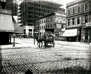 | Keywords: mhm:id=n34809 st. louis stlouis fourteenth street and washington avenue fourteenthstreetandwashingtonavenue horse-drawn carriage horsedrawncarriage coca cola cocacola building construction buildingconstruction streetcar tracks streetcartracks cobblestone street cobblestonestreet 1910s road architecture outdoor Intersection of Fourteenth Street and Washington Avenue. Horse-drawn vehicles remained a common fixture of city life until the 1920s. Intersection of Fourteenth Street and Washington Avenue. Horse-drawn vehicles remained a common fixture of city life until the 1920s. |