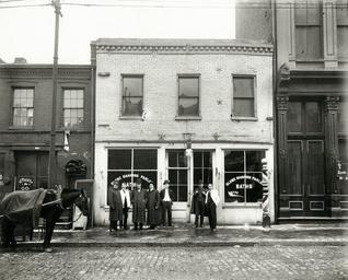 | Keywords: mhm:id=n34516 st. louis stlouis globe shaving parlor globeshavingparlor 1015 carr street 1015carrstreet barber pole barberpole barber police officer policeofficer 1910s building architecture outdoor Group of men standing in front of the Globe Shaving Parlor at 1015 Carr. Photograph, ca. 1910. In the surrounding blocks lived Italians, Yiddish-speaking Russians and Hungarians, and African American families from the South. Group of men standing in front of the Globe Shaving Parlor at 1015 Carr. Photograph, ca. 1910. In the surrounding blocks lived Italians, Yiddish-speaking Russians and Hungarians, and African American families from the South. |