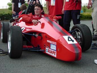 Keywords: Car4Scrutineering.JPG en UH Racing Car4 - Competing at Formula Student UK Own Alan Combes 2001-07 Formula SAE vehicles Red racing automobiles Number 4 on racing cars Males with land vehicles University of Hertfordshire Men with glasses