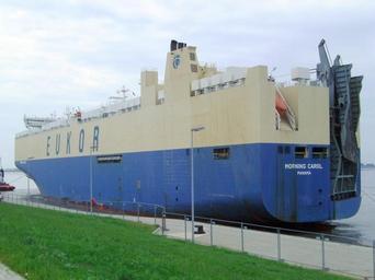 | Keywords: Car carrier Morning Carol 2011-07-26 (2).jpg en The car carrier Morning Carol is backing into the Kaiserschleuse ship lock in Bremerhaven A few moments later the ship hit the quay of the entrance area of the lock and was lightly damaged de Der Autotransporter Morning Carol fährt rückwärts in die Kaiserschleuse Bremerhaven ein Einige Momente später berührte das Schiff backbords die Kaje des Eingangsbereichs der Schleuse und wurde dabei leicht beschädigt own Tvabutzku1234 2011-07-26 thumb left thumb right 53 33 20 N 8 33 34 38 E region DE_heading SSW Cc-zero Morning Carol ship 2008 Car carriers in Bremerhaven Kaiserschleuse Bremerhaven |
