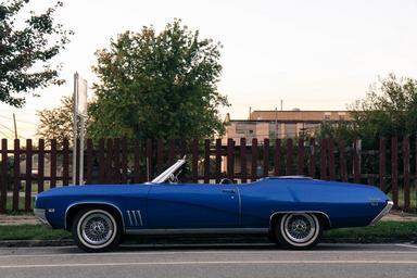 Keywords: car convertible blue parked automobile vehicle transportation transport auto drive