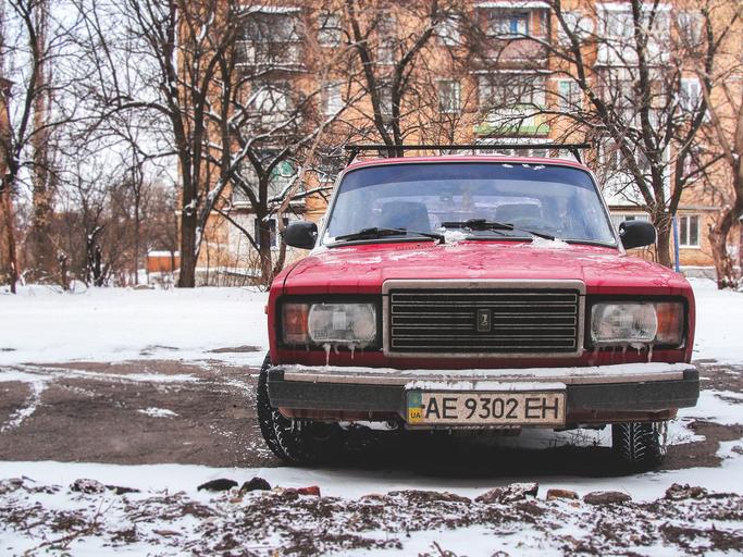 Keywords: car old lada vehicle vintage retro transportation automobile russian red winter urban