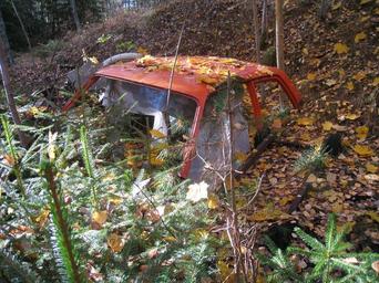 Keywords: car roof forest autumn colors spruce seedlings leaf tree