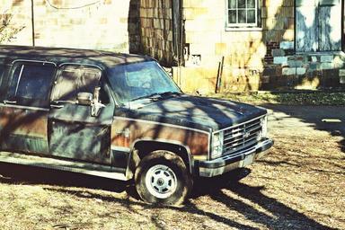 Keywords: car truck chevrolet old van chevy weathered vehicle transport automobile courtyard