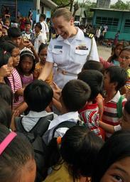 | Keywords: CARAT 2012 120704-N-YU482-002.jpg en U S Navy Lt Olivia Degenkolb a flag aide with Commander Task Force 73 talks with students at Banisil Central Elementary School during a combined military community service project for Cooperation Afloat Readiness and Training CARAT Philippines 2012 in General Santos City Philippines July 4 2012 CARAT is a series of bilateral exercises held annually in Southeast Asia to strengthen relationships and enhance force readiness 2012-07-04 Petty Officer 1st Class Stephen Hickok https //www dvidshub net/image/619695 120704-N-YU482-002 2012-07-06 17 30 GENERAL SANTOS CITY PH PD-USGov-Military-Navy Cooperation Afloat Readiness and Training 2012 Images from DoD uploaded by Fæ |