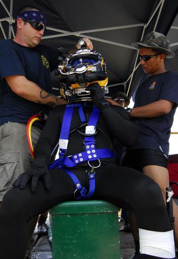 Keywords: CARAT 2013 130618-N-LX503-131.jpg en Navy Diver 2nd Class Andrew Gose left alongside a member of the Royal Malaysian Navy RMN fastens the helmet of a RMN diver during a dive and salvage training exercise in support of Cooperation Afloat Readiness and Training CARAT Malaysia 2013 More than 1 200 Sailors and Marines are participating in CARAT Malaysia 2013 U S Navy ships participating in CARAT Malaysia include the amphibious dock landing ship USS Tortuga LSD 46 with embarked U S Marine Corps landing force the diving and salvage vessel USNS Safeguard T-ARS 50 with embarked Mobile Diving and Salvage Unit MDSU 1 the guided missile destroyer USS Curtis Wilbur DDG 54 and the littoral combat ship Freedom LCS 1 CARAT is a series of bilateral military exercises between the U S Navy and the armed forces of Bangladesh Brunei Cambodia Indonesia Malaysia the Philippines Singapore Thailand and Timor Leste U S Navy photo by Mass Communications Specialist 1st Class Joy M Kirch-Kelling RELEASED 2013-06-18 Petty Officer 1st Class Joy Kirch-Kelling https //www dvidshub net/image/1683542 130618-N-LX503-131 2014-12-02 20 10 KUANTAN TANJONG GELANG MY PD-USGov-Military-Navy USS Curtis Wilbur DDG-54 USS Tortuga LSD-46 Cooperation Afloat Readiness and Training 2013 USNS Safeguard T-ARS-50 Images from DoD uploaded by Fæ |
