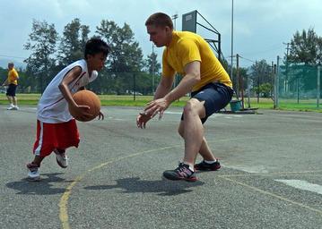 | Keywords: CARAT Philippines 2013 130628-N-YU482-159.jpg en Naval air crewman Operator 2nd Class John Lawrence assigned to the Tridents of Patrol Squadron VP 26 plays defense during a game of basketball with one of dozens of children from orphanages in the Subic Bay area during a community service event as part of Cooperation Afloat Readiness and Training CARAT Philippines 2013 on June 28 More than 600 sailors and Marines are participating in CARAT Philippines 2013 U S Navy units participating in CARAT Philippines include the guided missile destroyer USS Fitzgerald DDG 62 with embarked Destroyer Squadron DESRON 7 staff a U S Marine Corps landing force and the diving and salvage vessels USNS Safeguard T-ARS 50 and USNS Salvor T-ARS 52 with embarked Mobile Diving and Salvage Unit MDSU 1 CARAT is a series of bilateral military exercises between the U S Navy and the armed forces of Bangladesh Brunei Cambodia Indonesia Malaysia the Philippines Singapore Thailand and Timor Leste U S Navy photo by Mass Communication Specialist 1st Class Stephen Hickok/RELEASED 2013-06-27 Petty Officer 1st Class Stephen Hickok https //www dvidshub net/image/986229 130628-N-YU482-159 2013-08-01 09 34 SUBIC BAY PH PD-USGov-Military-Navy Cooperation Afloat Readiness and Training 2013 Mobile Diving and Salvage Unit 1 USNS Safeguard T-ARS-50 USS Fitzgerald DDG-62 Images from DoD uploaded by Fæ |