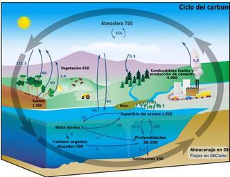 | Keywords: Carbon cycle-cute diagram-espanol.svg Deutsch Diagramm des Kohlenstoffkreislaufes Die schwarzen Zahlen zeigen wie viele Milliarden Tonnen Kohlenstoff Gt C in den verschiedenen Resevoiren vorhanden sind Die blauen Zahlen zeigen an wie viel Kohlenstoff zwischen den einzelnen Speichern pro Jahr ausgetauscht wird English This carbon cycle diagram shows the storage and annual exchange of carbon between the atmosphere hydrosphere and geosphere in gigatons - or billions of tons - of Carbon GtC Burning fossil fuels by people adds about 5 5 GtC of carbon per year into the atmosphere Español Este esquema del ciclo del carbono muestra el almacenamiento y los cambios anuales del carbono entre la atmósfera la hidrósfera y la geósfera en gigatones o billones de toneladas de carbono GtC La quema de combustibles fósiles libera cerca de 5 5 billones de toneladas de carbono al año en la atmósfera 日 語 炭素循環の概念図 黒の数 は れぞれのリザーバーに存 する炭素量 の数 はリザーバー間での年間の炭素の移動量 単位はギガt(10億トン) Русский Схема геохимического цикла угле ода показывает количество угле ода в атмосфе е гид осфе е и геосфе е Земли а также годовой пе енос угле ода между ними Все величины п иведены в гигатоннах миллиа дах тонн В езультате сжигания ископаемого топлива человечество ежегодно добавляет 5 5 гигатонн угле ода в атмосфе у http //en wikipedia org/wiki/File Carbon_cycle-cute_diagram svg 1/7/2010 Carbon_cycle-cute_diagram jpeg User Kevin Saff on en wikipedia Derivative work FischX Traducción Tomás Clarke PD-heirs Derivative works of this file Carbon cycle-cute diagram-german svg Carbon cycle-cute diagram zh-hant svg Carbon cycle |