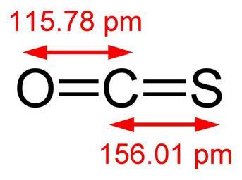 | Keywords: Carbonyl-sulfide-2D-dimensions.png Structure of the carbon disulfide molecule OCS with the C S bond length of 1 5601 Å and the C O bond length of 1 1578 Å Data from http //www hbcpnetbase com/ CRC Handbook of Chemistry and Physics 88<sup>th</sup> edition Own 2008-06-11 Ben Mills Benjah-bmm27 Images by Ben Mills Carbonyl sulfide |