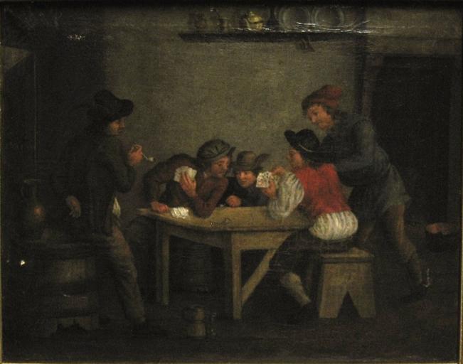 | Keywords: Card Players by Johannes Hubertus Cuypers Cuypershuis 0346.jpg Artwork Creator Johannes Hubertus Cuypers Herberginterieur met vijf kaartspelers Naar een oude prent 1858 ucfirst oil on canvas cm 43 5 52 3 4 3 institution Cuypershuis place of discovery object history exhibition history credit line accession number 0346 place of creation Roermond museumcollecties roermond nl http //museumcollecties roermond nl/adlib/search/simple Home http //museumcollecties roermond nl/adlib/Details/collect/2027 Info http //museumcollecties roermond nl/adlib-wwwopacx/wwwopac ashx command getcontent server images value 0346 jpg Pic http //museumcollecties roermond nl/adlib/Details/collect/2027 Collectie Online Gemeente Roermond i18n/as Kaartspelers 1858 PD-Art-100 Johannes Hubertus Cuypers 1858 Paintings in the Cuypershuis Cuypers Johannes Hubertus Uploaded with UploadWizard |