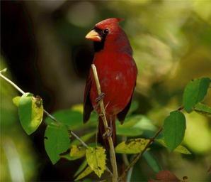Keywords: cardinal redbird songbird male feathers branch wing outdoors sitting perch beak yellow bird usfws