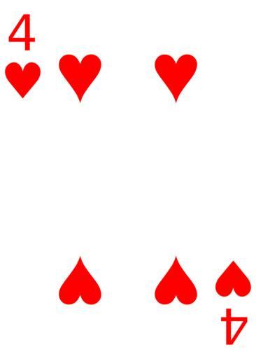 Keywords: Cards-4-Heart.svg Part of a set of SVG Playing Cards Own 2008-05-05 me Public Domain GW Simulations en SVG playing cards 1 4 of Hearts Individual playing cards SVG playing cards ™¥