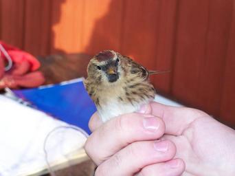 | Keywords: Carduelis flammea ringed by Landsort Bird Observatory-1.JPG sv En gråsiska Carduelis flammea antagligen av underarten brunsiska Carduelis flammea cabaret ringmärkt vid Landsorts fyr på Landsorts södra udde på ön Öja syd om Nynäshamn i Södermanland i Stockholms län i Sverige Denna ringmärkning utförs av Landsorts fågelstation en A Common Redpoll Carduelis flammea or probably a Lesser Redpoll Carduelis cabaret ringed at Landsort Lighthouse on the south cape of the island Öja Landsort south of Nynäshamn in Södermanland in Stockholm County in Sweden Landsort Bird Observatory is responsible for the ringing 2010-10-08 own Calandrella cc-zero Uploaded with UploadWizard Unidentified Acanthis Birds being ringed Fringillidae in Sweden Bird migration Ringed birds |