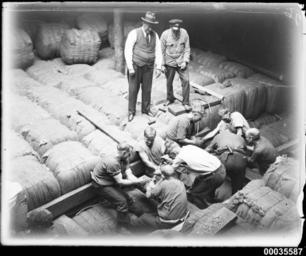 | Keywords: samuel j hood collection samueljhoodcollection barque maritime activity maritimeactivity magdalene vinnen magdalenevinnen sydney harbour sydneyharbour harbour scenes harbourscenes foreign vessel foreignvessel merchant vessel merchantvessel woolloomooloo blackandwhite monochrome photo border black and white The four-masted steel barque MAGDALENE VINNEN, was built in 1921 in Kiel, Germany for F A Vinnen and Company in Bremen. On 27 February 1933, under the command of Captain Lorenz Peters, MAGDALENE VINNEN sailed into Sydney Harbour. The masts were too tall to allow the vessel to pass under the Harbour Bridge to be berthed in Pyrmont, so it was moved to Number 2 wharf in Woolloomooloo. The barque was loaded with almost 16,000 bales of wool, the fourth largest shipment to have left Sydney, before it sailed the record-breaking 82-day voyage for Falmouth, England. The barque visited Australia again in 1935, with its cargo being wheat, lifted from Port Broughton in South Australia. The following year, the vessel was sold to Norddeutscher Lloyd, Bremen, renamed KOMMODORE JOHNSEN and used as a cargo carrier and sail-training ship. In 1945, the ship was awarded to the Soviet Union as war compensation and renamed SEDOV. When it was first built, it was the largest auxiliary barque in the world. To this day, it is still in operation and in 2011, it retained its ranking as the largest tall ship in the world. This photo is part of the Australian National Maritime Museum’s Samuel J. Hood Studio collection. Sam Hood (1872-1953) was a Sydney photographer with a passion for ships. His 60-year career spanned the romantic age of sail and two world wars. The photos in the collection were taken mainly in Sydney and Newcastle during the first half of the 20th century. The ANMM undertakes research and accepts public comments that enhance the information we hold about images in our collection. This record has been updated accordingly. Photographer: Samuel J. Hood Studio Collection Object no. 00035587 The four-masted steel barque MAGDALENE VINNEN, was built in 1921 in Kiel, Germany for F A Vinnen and Company in Bremen. On 27 February 1933, under the command of Captain Lorenz Peters, MAGDALENE VINNEN sailed into Sydney Harbour. The masts were too tall to allow the vessel to pass under the Harbour Bridge to be berthed in Pyrmont, so it was moved to Number 2 wharf in Woolloomooloo. The barque was loaded with almost 16,000 bales of wool, the fourth largest shipment to have left Sydney, before it sailed the record-breaking 82-day voyage for Falmouth, England. The barque visited Australia again in 1935, with its cargo being wheat, lifted from Port Broughton in South Australia. The following year, the vessel was sold to Norddeutscher Lloyd, Bremen, renamed KOMMODORE JOHNSEN and used as a cargo carrier and sail-training ship. In 1945, the ship was awarded to the Soviet Union as war compensation and renamed SEDOV. When it was first built, it was the largest auxiliary barque in the world. To this day, it is still in operation and in 2011, it retained its ranking as the largest tall ship in the world. This photo is part of the Australian National Maritime Museum’s Samuel J. Hood Studio collection. Sam Hood (1872-1953) was a Sydney photographer with a passion for ships. His 60-year career spanned the romantic age of sail and two world wars. The photos in the collection were taken mainly in Sydney and Newcastle during the first half of the 20th century. The ANMM undertakes research and accepts public comments that enhance the information we hold about images in our collection. This record has been updated accordingly. Photographer: Samuel J. Hood Studio Collection Object no. 00035587 |