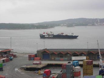 Keywords: Cargo ship Nordfjell.JPG en Cargo ship Nordfjell approaches the harbor in Kristiansand Norway The ship was built at Kristiansands Mek Verksted in 1978 as Fast One own Navarch41 2009-07 cc-zero Nordfjell ship 1978 Kristiansand harbour