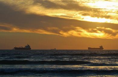 Keywords: cargo ships freighter container ship evening sky sea ocean clouds coast ship shipping cargo