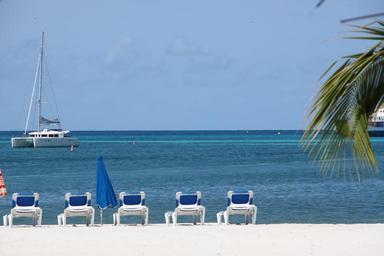 Keywords: caribbean sun loungers sea holiday summer tourism palm trees parasols holidays concerns deck chair sand beach beach island relaxation distant