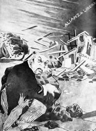Keywords: Caricatura Juan Luis Sanfuentes 2.jpg es Capeando el Temporal Don Juan Luis -¡Demonios Otra vez vuelven a soplar los vientos liberales Leopoldo Castedo Historia de Chile tomo IV Max 1918-03-23 PD-Chile 1918 cartoons Juan Luis Sanfuentes Caricatures of politicians of Chile