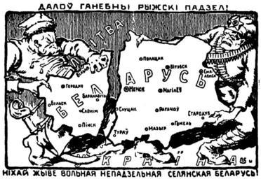 | Keywords: Caricature for Riga Peace 1921.png Ка ыкату а «Далоў ганебны ыжскі падзел іхай жыве вольная непадзельная селянская Бела усь » Ка икату а «Долой позо ный ижский аздел Пускай живет свободная неделимая к естьянская Бела усь » Ка икату а «Геть ганебний изький поділ ехай живе вільна неподільна селянська Біло усь » Caricature for Riga Peace 1921 Shows a Pole in old-style officer's uniform and sword-belt and an ammunition-bandoliered and skull-faced Red Army soldier together tearing White Russia or Belarus into two while stomping on Ukraine Владими О лов Генадзь Саганович Десять веков бело усской исто ии 862 1818 События Даты Иллюст ации Вильня аша Будучыня 2001 1921 год Author PD-old Caricatures about peace Treaty of Riga People with maps in art Belarusians in Poland Territorial evolution of Poland |