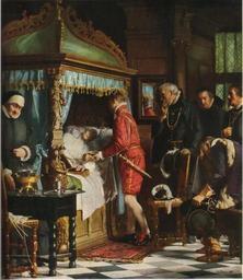 | Keywords: Carl Bloch - Ved Niels Kaas dødsleje 1880.jpg Ved Niels Kaas' dødsleje At the death bed of Niels Kaas The 17-year old Christian IV receives from the dying chancellor Niels Kaas the keys to the vault where the royal crown and sceptre are stored creator Carl Bloch 1880 oil canvas cm 195 169 Det nationalhistoriske museum Frederiksborg Slot Denmark John Danstrup Danmarks historia Från äldsta tid till våra dagar Första bandet Malmö Allhems förlag 1946 Public domain PD-old-100 Creator Carl Bloch Denmark in history paintings Deathbeds in art Christian IV of Denmark 1880 paintings Carl Bloch Munk family |