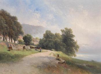| Keywords: Carl Franz Emanuel Haunold Holzgarten Vorstadt in Passau.jpg Holzgarten Vorstadt in Passau verso title Passau H text/monogram lower left oil canvas cardboard 37 x 51 cm http //www dorotheum com Dorotheum by 1911 Carl Franz Emanuel Haunold 1832-1911 PD-old Images from Dorotheum Karl Haunold History of Passau Passau in art Landscape paintings of Bavaria Paintings of country roads | ||||