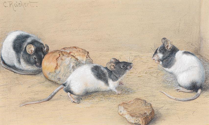 | Keywords: Carl Reichert Mäuse.jpg Mäuse C Reichert signature upper left watercolor bodycolor white crayon paper 22 5 x 20 cm http //www dorotheum com Dorotheum by 1918 creator Carl Reichert PD-old-auto-1923 1918 Images from Dorotheum Carl Reichert painter Paintings of mice |