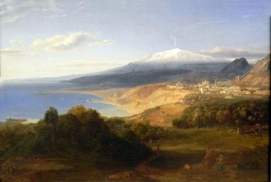 | Keywords: Carl Rottmann Taormina (1).jpg Taormina mit dem Ätna Taormina with Mount Etna Taormina con l'Aetna oil canvas cm 81 2 122 2 Munich Germany Neue Pinakothek WAF 845 credit line 1841 durch König Ludwig I aus der Sammlung Klenze erworben Neue Pinakothek München Uploader Hajotthu at http //de wikipedia org de wikipedia probably 1829 possibly 1830 Creator Carl Anton Joseph Rottmann Other versions PD-art-100 Carl Rottmann German paintings in the Neue Pinakothek Romantic landscape paintings Taormina in art Mount Etna in art Mount Etna viewed from Taormina 1829 paintings |