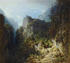 | Keywords: Carl Spitzweg - Berglandschaft mit Liebespaar (Jäger und Mädchen).jpg Artwork Creator Carl Spitzweg de Berglandschaft mit Liebespaar Jäger und Mädchen 1863 oil paper canvas cm 51 2 55 1 signed with rhombus monogram lower right object history Provenance Acquired directly from the artist by Kaufmann Bayer Prague May 1863 for 240 guilders Thence by descent to Sophie and Margarethe Bayer probably Acquired from the Bayer family by Norbert Nusser Biberach-Riss 1938 Acquired from the above by Heinrich Nauer Lindenberg Anonymous sale; Weinmüler Munich 2 July 1942 lot 568 with Galerie Thum St Gallen Acquired from the above by J Huber 8 October 1948 thence by descent to the present owners christies online 5620304 PD-old-100-1923 1885 Paintings by Carl Spitzweg 19th-century mountain paintings 1863 paintings 1860s landscape paintings |