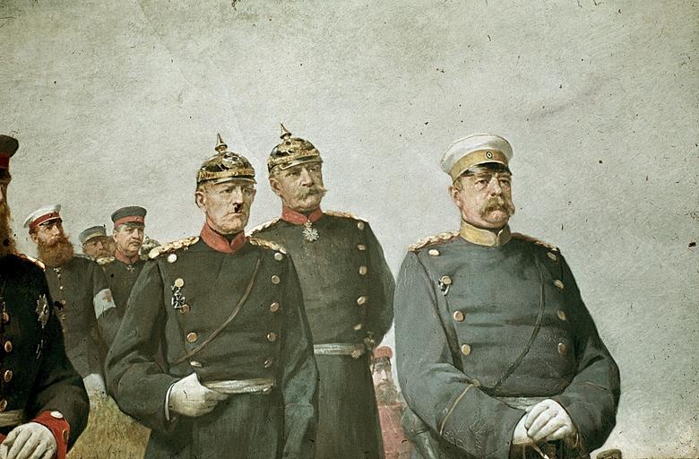 | Keywords: Carl Steffeck-Reille1884,Ruhmeshalle-3.JPG General Reille überbringt König Wilhelm I auf dem Schlachtfelde von Sedan das Schreiben Kaiser Napoleons Wandgemälde von Carl Steffeck 1884 für die ehemalige Ruhmeshalle Berlin Zerstörung nach Bombentreffer um 1944 Detail mit Moltke Albrecht von Roon und Otto von Bismarck http //www bildindex de/bilder/zi0290_0029a jpg Aufnahme 1943/1944 1884 Creator Carl Steffeck thumb 220px none Full version PD-old-100 Carl Steffeck Ruhmeshalle Berlin Helmuth von Moltke the Elder Otto von Bismarck in 1884 Battle of Sedan Pickelhaube in art Images from Bildarchiv Foto Marburg |