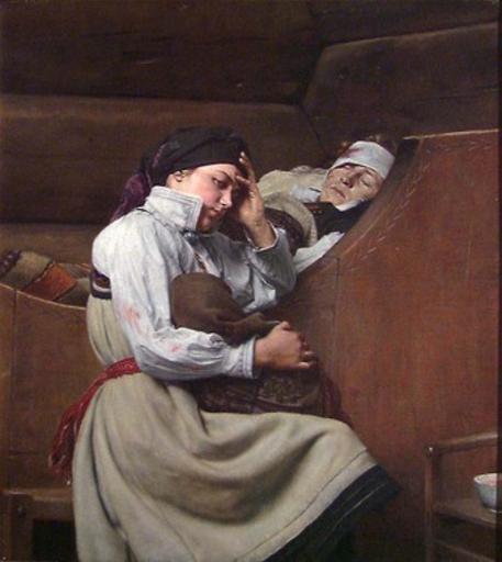 | Keywords: Carl Sundt-Hansen Såret.jpg title Såret Wounded oil on canvas 41 x 37 cm http //digitaltmuseum no/things/sret-maleri/NMK-B/NG M 00989 Digitalt Museum 1888 Creator Carl Sundt-Hansen PD-old-100 Paintings by Carl Sundt-Hansen Paintings in the Nasjonalgalleriet 1888 paintings in Norway Images from Digitalt Museum Norway National costumes of Norway in art Setesdalsbunad Paintings of women of Norway People with brown background People in three-quarter views in art Women hands 19th-century paintings from Norway 19th-century oil on canvas paintings in Norway |