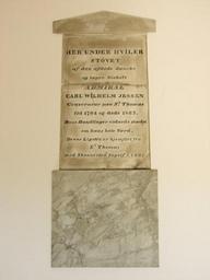 Keywords: Carl Wilhelm Jessens ligsten.JPG Admiral Carl Wilhelm Jessens 1764-1825 ligsten fra St Thomas Holmen Kirkes store gravkapel København own 2011-10 Orf3us Holmens Kirke PD-old-100