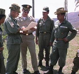 | Keywords: Carlos Arana Osorio 1965.jpg en U S military advisors confer as Col Carlos Arana Osorio of Guatemala and an aide look on 1965 From left to right Sgt Casper González U S infantry advisor; U S Army intelligence advisor Major Vernon Justice; unidentified Guatemalan soldier; and Col Carlos Arana Osorio Photo still from U S Army film shot in 1965 in Guatemala es Asesores militares de EE UU confieren mientras esperan el coronel Carlos Arana Osorio y un ayudante De izquierda a derecha sargento Casper González asesor de infantería del Ejército de EE UU; mayor Vernon Justice asesor de inteligencia del Ejército de EE UU; un soldado no identificado de Guatemala; y el coronel Carlos Arana Osorio Imagen fija de una película del Ejército de Estdos Unidos rodada en 1965 1965 http //www gwu edu/~nsarchiv/NSAEBB/NSAEBB32/vol2 html unknown US Army camera operator PD-USGov Military of Guatemala Presidents of Guatemala Men of Guatemala 1965 in Guatemala Central America in the 1960s |