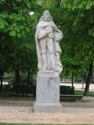 | Keywords: Carlos II de España.jpg Carlos II de España Estatua esculpida en piedra blanca por Juan Pascual de Mena 1707 1784 entre 1750 y 1753 La imagen que se ve aquí de este rey se encuentra en el Retiro de Madrid en el paseo de la Argentina conocido popularmente como paseo de las estatuas Forma parte de una serie de estatuas dedicadas a todos los monarcas de España mandadas hacer para la decoración del Palacio real de Madrid en el reinado de Fernando VI En un principio la idea era que adornasen la cornisa del palacio Fueron realizadas por varios autores bajo la dirección de los escultores de la Corte Domenico Olivieri y Felipe de Castro Parece ser que nunca llegaron a su destino y se colocaron en distintos lugares de la ciudad plaza de Oriente El Retiro puerta de Toledo y algunas se llevaron a otras provincias La fotografía ha sido realizada por Pablo Alberto Salguero Quiles Dominio Público Source http //enciclopedia us es/index php/Imagen Carlos_II_de_Espa F1a jpg http //enciclopedia us es/index php/Usuario P40p Pablo Alberto Salguero Quiles Sculptures of Charles II of Spain Paseo de la Argentina Madrid Juan Pascual de Mena Images from Enciclopedia Libre 18th-century statues in Spain |