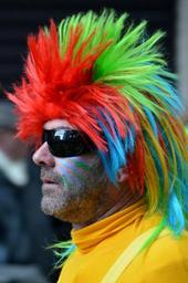 Keywords: carnival mask costume people dress up wig sunglasses man face paint