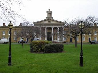 | Keywords: Caroline Gardens Chapel Entrance.jpg The main entrance to the disused chapel on the Caroline Gardens Estate in Peckham South London UK This was originally built as the Licensed Victuallers Asylum in 1827 2006-12-10 own assumed Vaughan~commonswiki Chapels in the London Borough of Southwark Caroline Gardens |