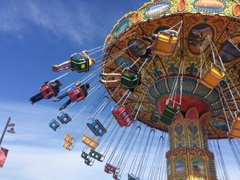 Keywords: carousel swings amusement fun park activity ride sunny speed summer enjoy outdoor motion swinging sky blue