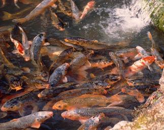 | Keywords: Carp.jpg Carp swim in Japan Location unrecorded; perhaps Shimabara Nagasaki Prefecture I took this photo and contribute my rights in the file to the public domain; individuals and organizations retain rights to images in it See Cyprinus carpio 2005-10-09 own assumed Fg2 Koi Fish of Japan |