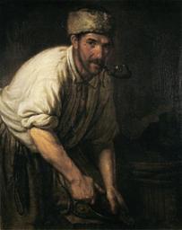 | Keywords: Carpenter by Kapiton Pavlov (1838, Russian museum).jpg К С Павлов Плотник 1838 Холст масло 94 5 х 77 а обо оте авто ская надпись 1838 Года съ нату ы писалъ Капитонъ Павловъ Пост в 1938 че ез ЛЗК соб ание В Д Ф олова Ж-5258 Ка тину «Плотник» можно отнести к нечасто вст е- чающемуся жан у «п офессионального по т ета» Очевидно абота была выполнена с нату ы фигу а аботающего мужчины заго елое лицо с к упными че тами мане а ку ить т убку за аботой взяты из жизни Живописец написал «Плотника» в пе иод своей жизни в ало оссии когда он п еподавал и- сование в ежинской гимназии где его учениками были В Гоголь А ок ицкий П Кукольник и д угие В ка тине от азились впечатления худож- ника от еальной жизни нелегкого т уда п иносяще - го масте овому человеку истинное удовлетво ение Лица России По т етная гале ея Русского музея 1838 Kapiton Pavlov 19th-century portraits in the Russian Museum Faces of Russia GRM 2012 Files uploaded by Shakko from various sources Kapiton Pavlov Carpenters in art PD-old |