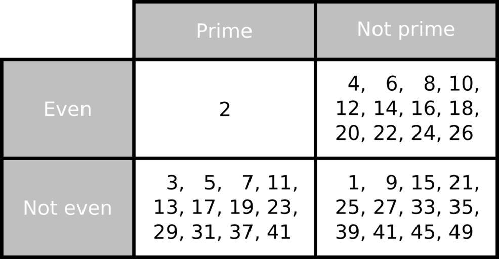 | Keywords: Carroll Diagram (two criteria).svg A two-criteria Caroll Diagram also called Lewis Caroll's Square used for grouping objects in yes/no fashion Carroll_diagram_2 png 2008-12-10 16 10 UTC derivative work LennyCZ <span class signature-talk >talk</span> Carroll_diagram_2 png Jake Choules Converted to SVG using Inkscape on Ubuntu 7 04 Enhanced compatibility with different backgrounds including black LennyCZ Carroll_diagram_2 png </nowiki> 2006-06-16T05 48 27Z CarrotMan 325x184 6251 Bytes <nowiki> A slightly more complicated Carroll diagram also made with Sketch for Mac OS X Own work 2006-06-16 Jake Choules See below other_ve</nowiki> Uploaded with derivativeFX Carroll diagrams Prime numbers |