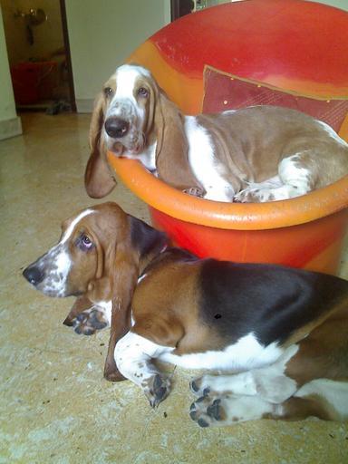 | Keywords: Carrot and brinjal.jpg en Carrot lemon and white and Brinjal tri color 5 month old basset hound Own Mantri1234 11/08/2009 Carrot and Brinjal 5 month old basset hound Basset Hound Hounds Scent hounds Dog breeds originating in France Dog breeds originating in Europe Five months old puppies |