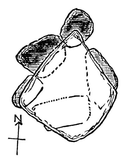 Keywords: Carrowmore Megalithic Cemetery P54 Ground Plan by W. G. Wood-Martin 1887.png Ground plan of P54 identified under the number 53 in the text by Wood-Martin but labeled 53 in the associated map as published by William Gregory Wood-Martin in his article The Rude Stone Monuments of Ireland Continued The Journal of the Royal Historical and Archaeological Association of Ireland Fourth Series 8 no 70 1887 50 “94 Fig 63 of W G Wood-Martin https //archive org/stream/journalofroyalso18royauoft page/50/mode/2up The Rude Stone Monuments of Ireland Continued The Journal of the Royal Historical and Archaeological Association of Ireland Fourth Series 8 no 70 1887 50 “94 This file was derived from journalofroyalso18royauoft_raw_0077 jp2 out of https //archive org/download/journalofroyalso18royauoft/journalofroyalso18royauoft_raw_jp2 zip journalofroyalso18royauoft_raw_jp2 zip and postprocessed cropping rotating converting it to b/w using a threshold making the background transparent 1887 William Gregory Wood-Martin 1847 “1917 see http //catalogue nli ie/Record/vtls000132150 NLI record PD-old-auto-1923 1917 Carrowmore Megalithic Cemetery P54 Megaliths diagrams |