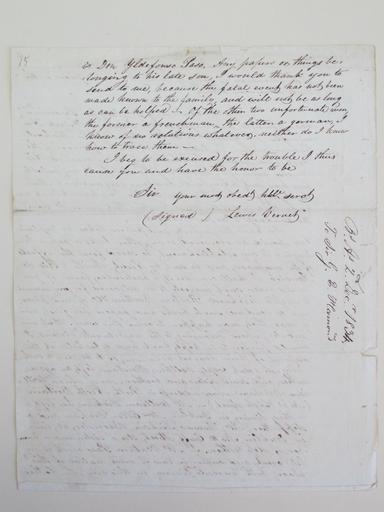Keywords: Carta de Vernet sobre sublevación gaucha de Rivero 02.jpg es Carta de Vernet sobre sublevación gaucha de Rivero Enviada desde Buenos Aires el 2 de diciembre de 1834 al comandante en jefe de la Royal Navy en la estación de América del Sur en RÃo de Janeiro en Buenos Ayres Dec 2nd 1834 To the Commander in Chief of H B M ™S Naval Forces Ion the South American Station I write under date of 2nd July per Sardinian Brig Juan Buatista and duplicate per Sardinian Frigate Ammiraglio Des Geneys to the late Admiral Sir Michael Seymour enclosing a letter to Liet Smith Governor of the Falkland Islands which letter not having reached Rio de Janeiro until after the death of Sir Michael may probably have been sent to England And being very anxious to attain the object for which they were written I beg leave to hand you herewith copies of the same trusting that you will have the kindness to do the needful In case the property and papers taken by Captain Low should be recovered or any other books or papers belonging to my establishment be saved from the effects of the massacre and be sent by Lieut Smith to Rio de janeiro I shall consider it a particular favour if you would order such property to be delivered to my account to Messr Richards Rostron Brothers 46 of said place and to send me such books and papers per first man of war that may happen top come this way But any private papers belonging to the unfortunate victims I would prefer to be kept back and to be held at the disposal of their nearest relatives or to be sent to such My late agent Capt Matthew Brisbane left an aged mother and some sisters and brothers one of which is William Brisbane whose address is Porth North Britain No 61 High Street “ Mr William Dickson has left a mother living in Dublin Mrs Ellen Dickson and a stepfather Mr Thomas Dickson Barrister at law in Dublin No 10 Cuff Street also a sister and a number of step brothers Mr Ventura Paso clerk of my late agency and brother in law of mine native of thisplace both his parents are living in this city the father is Don Yldefonso Paso Any papers or things belonging to his late son I would thank you to send to me because the fatal event has not been made known to the family and will not be as long as can be helped Of the other two unfortunate men the former a Frenchman the latter a german I know of no relatives neither do I know how to trace them I beg to be excused for the trouble I thus cause you and have the honor to be Sir your much obedient servant signed Lewis Vernet Bs As - 2nd Dec 1834 1834-12-02 Archivo General de la Nacion Sala VII Legajo 132 Documento 198 Luis Vernet 1791-1871 other versions Custom license marker 2015 04 03 PD-Old Uploaded with UploadWizard Luis Vernet 1834 documents History of the Falkland Islands Comandancia polÃtica y militar de las Islas Malvinas |